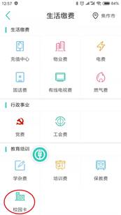 1)登录掌银后,点击“生活缴费”->“教育培训”->“校园卡”。