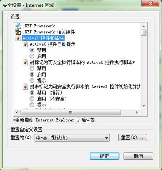 5、关闭之后,点击“自定义级别”,然后将ActiveX控件和插件下的所有选项都选为“启用”。