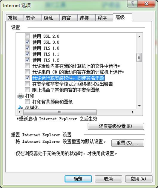 7、将安全下面的“允许运行或安装软件,即使签名无效”。