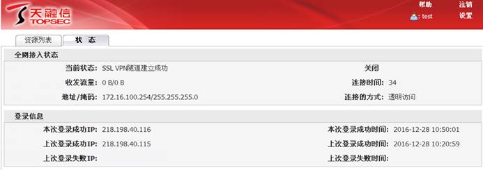 11、登陆之后看状态,如果显示隧道建立成功,则通过点击资源列表里面的“学校网站”,可访问所有内容,包括原先限制在校内的内容,直接输入域名则认为是外网访问,无法访问限制的内容。